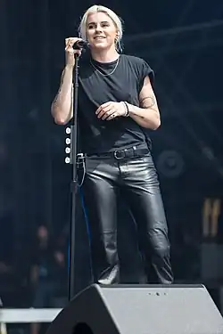 Gunn is a prominent LGBT voice in the alternative music scene.[20] She stated in an interview for Rolling Stone that she first came out as gay to her parents when she was 18, by leaving a letter under her mother's pillow before she went on tour.[21] "First and foremost I want to be known as is an artist and creative before anything else," she explained in an interview with Playboy. "I think my sexuality is the last thing to check off on that list."[22] Gunn explained her decision to be vocal about her sexuality in an interview with Newsbeat in 2015: "I never had someone to look up to and be like 'oh that person is OK and they're gay.' If I can be that for someone then it's why I'm open about it."[23]