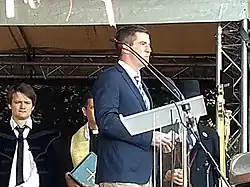 Máté Kocsis (born 6 May 1981)[1] is a Hungarian jurist, sports administrator and politician, who served as Mayor of Józsefváros (8th district of Budapest) from 2009 to 2018.[2] He also represents Józsefváros (Budapest Constituency XI then VI) in the National Assembly of Hungary from 2010 to 2014, and since 2018. He is the current leader of the Fidesz parliamentary group.[2] Since 2015 he is the president of the Hungarian Handball Federation.