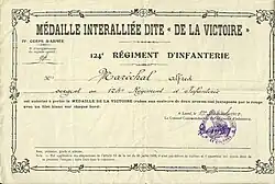 1. ^ Champenois, Marc (24 December 2011), "Médaille interalliée dite Médaille de la Victoire", France-phaleristique.com (in French), retrieved 6 June 2011