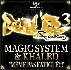 "Même pas fatigué !!!" is a 2009 song recorded as duet by Magic System and Khaled. It was the lead single from Khaled's album Liberté on which it is the 18th track, and it also appeared on Kore's album Raï'n'B Fever : Même pas fatigué !!! on the second disc. The song stayed at number-one hit for seven non-consecutive weeks in France, becoming Magic System's first topping hit and most successful single in France. It was also much aired on radio.
