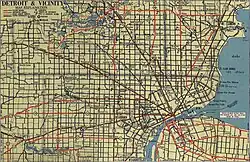 11. ^ Michigan State Highway Department & Rand McNally (April 15, 1939). Official Michigan Highway Map (Map) (Summer ed.). Scale not given. Lansing: Michigan State Highway Department. Detroit & Vicinity inset. OCLC 12701143.