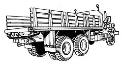 The M328 had a stake body 20 ft (6.1 m) long by 7 ft (2.1 m) wide for carrying bridging equipment and components. They had a roller on the rear to help unloading and small winches on the side to secure cargo. The stake sides could be removed to carry oversize loads. The largest tires in the series, 14.00x20, were used with dual rear tires.[21][4]