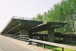Several incomplete structures were built around the motorway - at least 3 have been demolished or reused from the 1960s dubbed Bridges to Nowhere. A few incomplete structures remain.