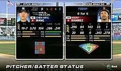 Gameplay is similar to the other versions of MLB: The Show, as well as most baseball simulation video games. Some new features were introduced in various gameplay modes. The player may take control of one of 30 Major League Baseball teams in any game mode (excluding Road to the Show) and use that team in gameplay.[3] The game has variable game modes in which a player takes control of a team for a single game, one season, or a franchise (multiple seasons).[4] The player may control the team's batting, pitching, and fielding while playing the game.[3] Many new general features have been introduced to the game as improvements to the previous edition, MLB 07: The Show. One of the major updates to the game is the "Batter/Pitcher Analysis" feature.[4] This feature allows players to check the "match up" between the current batter and pitcher.[4] Information such as strike/ball ratio, pitch types, pitch frequency, pitch location and the last 25 pitches thrown by the current pitcher.[4] For pitchers, stats such as batters "hot zones", balls taken, strikeout pitch location, and stats when facing that particular pitcher.[4]