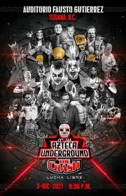 - ^ a b c d e f "Esta es la cartelera para @MLWAzteca Underground y The Crash Viernes 03 de diciembre Alarm clock 8:30 PM Auditorio Frausto Gutiérrez". Más Lucha. December 1, 2021. Retrieved December 1, 2021.
