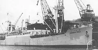 In 1940, during the final days of the Battle of France, MS Morska Wola was in port in France, from which she escaped to the United Kingdom. She was then put to use in Northern Atlantic convoys. She took part in over 40 convoys, most notably, she was one of the ships who managed to escape, after the German heavy cruiser Admiral Scheer attacked convoy HX 84, thanks to the delaying action fought by the armed merchant cruiser HMS Jervis Bay. She returned to Poland at end of the war, operating on shipping routes to South America and the Levant.[5]