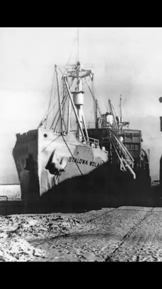 The MS Stalowa Wola (formerly known as Henry Horn, Pine Court, and Rio Pardo) was a Polish freighter during the Second World War. The ship was bought in Norway by Gdynia America Line; originally she was to be called Bogumin, finally was named after a city in central Poland, by then a newly built centre of heavy industry[1].