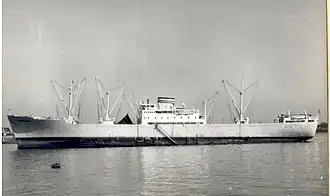 MV Brandanger delivered in 1949 was a general purpose cargo ship, previously owned by the Norwegian shipping company Westfal-Larsen. The vessel was sold to Bulgaria in 1965, renamed Alkaid. In 1971 she became Petar Beron, being converted into a school ship. As from 1980 she was laid up in Varna, Bulgaria as a stationary training ship . On 16 January 2015 she arrived at Aliağa for demolition.[2]
