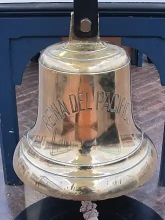 Reina del Pacifico's bell is preserved in the Williamson Art Gallery and Museum, Birkenhead. The ornate wood panelling from her Cigar Lounge forms part of the interior of The Cornmarket public house in Liverpool.