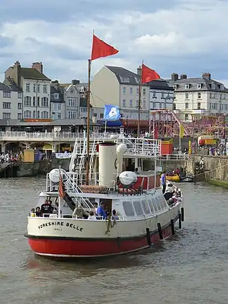 The MV Yorkshire Belle is a pleasure cruiser based in Bridlington, East Riding of Yorkshire, England.[1] She was built by Cook, Welton & Gemmell as a replacement for the original Yorkshire Belle, that was lost in the Humber estuary during the Second World War after hitting a magnetic mine, sinking with all hands.[2] She was part owned by the Pockley family who ran a syndicate for business purposes that included local people. John Cross Pockley, known as ‘Jack’ skippered her between 1947 and 1973. Yorkshire Belle became renowned within the Yorkshire district.