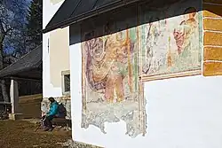 The local church, built on a hill above the settlement, is dedicated to Saint Nicholas. It was first mentioned in documents dating to 1156. The surviving church is a Gothic building from the late 14th or early 15th century. The original vaulted sanctuary survives. The painted wooden ceiling of the nave is from 1649 and was renovated in 1996. Frescos on the north side of the nave depict the journey of the Magi and on the central arch the legend of Saint Ursula. On the south wall Saint Christopher and the Crucifixion of Jesus are shown, with the date 1467.[6]