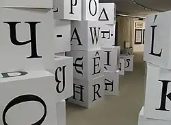 Dawidek combines a wide range of media in her projects – textual objects and installations, painting, animation, photographs, written drawings and hypertexts.[2]