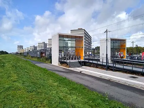 Maassluis West is a metro station in Maassluis, Netherlands. Originally opened as a railway station, it is now part of Rotterdam Metro Line B.