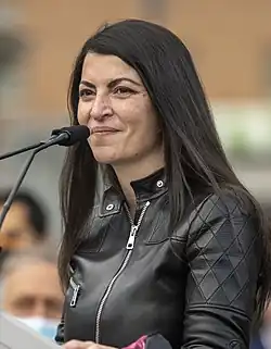 In the April 2019 Spanish general election, Olona was elected deputy and then re-elected in the November 2019 Spanish general election, representing in both cases the province of Granada.[7] She is known for her virulent criticism of the government of Pedro Sánchez, accusing it of "genocide" for its management of the COVID-19 pandemic in Spain or of wanting to impose the Venezuelan "Chavist model" in Spain. She favours establishing a government of "national salvation" involving the army.[8] She is opposed to laws on LGBT or gender violence.[9]