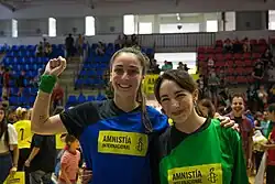 Sánchez made the news when she responded to a tweet with comments about her own lesbian sexuality, and support for women's football in late 2018.[27] In December 2018, she also drew attention after suggesting professional football should be mixed gender.[29] In December 2018, she was critical of the payout for men playing in the Madrid-hosted Copa Libertadores final, with women getting only US$110,000 in total prize money while men got US$103,850,000 in total prize money.[30] In August 2018, she took to social media to support a 7-year-old girl who wanted to play for a boys team in her native Santa Fe.[31]