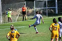 It was not until 2012 when she began to participate in the First Women's Division as part of the UAI Urquiza Sports Club, an opportunity that arose after a friend in the city of Santa Fe, where the coach of the UAI, Diego Guacci, invited her to try out for the team.[10][4][11] 2012 was the first year a national women's league existed in the country, with national competitions being organized informally prior to that.[4] Her team finished first in the league's inaugural season.[12]