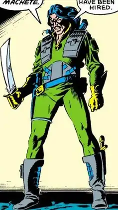Machete (Ferdinand Lopez) is a fictional character appearing in American comic books published by Marvel Comics. The character has been a member of Batroc's Brigade and Doom's Brigade. He was also a former revolutionary of San Diablo in South America. He became a mercenary to finance a revolution but is reportedly killed by Zeitgeist.[1]