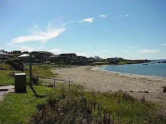 The closest settlement to Machrihanish Bay is the small village of Machrihanish which sits on the headland at the south end of the bay. Directly east of the bay sits Campbeltown Airport (RAF Machrihanish)[3] and further east on the other side of the peninsula, a distance of 3 nautical miles (5.6 km; 3.5 mi) sits the town of Campbeltown. To the north of the airport and close to the northern shore of the bay, is the village of West Darlochan. The main A83 Road follows the west coast of the Kintyre peninsula, when traveling south, until it reaches the north coast of the bay, where it cuts east through the peninsula, to miss the airport, cutting through the small villages of Kilchenzie, Glencraigs, Drumore before finally meeting Campbeltown. The B842 road leaves Campbeltown traveling in a westerly direction, and passes through the small village of Stewarton, before reaching the bay as the B843.