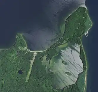 ![]() Mackaysee Lake (right) is the larger of the two lakes in northern Chambers Island. | |