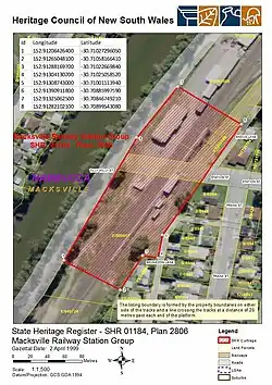 - ^ a b c d e "Macksville Railway Station group". New South Wales State Heritage Register. Department of Planning & Environment. H01184. Retrieved 2 June 2018.