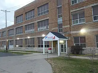 ![]() Front entrance of Macomber High School. Now operated by Cherry Street Mission. | |