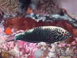 Macropharyngodon negrosensis, the yellow-spotted wrasse, black Leopard-wrasse or black Wrasse,[2] is a species of marine ray-finned fish from the family Labridae, the wrasses.[3]