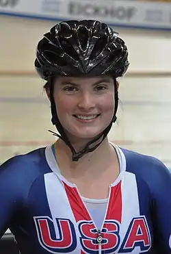 Madalyn Godby (born September 5, 1992) is an American track cyclist, representing the United States at international competitions.[1] Godby is the current U.S. women's national record holder in the flying 200m (10.555), standing 250m (19.398), and team sprint (33.353).[2]