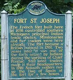 This article incorporates text from this source, which is in the public domain. - Malchelosse, Gérard (1958). "Le Poste de la Rivière Saint-Joseph (Mich.) (1691-1781)". Les Cahiers des Dix (23): 139. doi:10.7202/1079961ar.