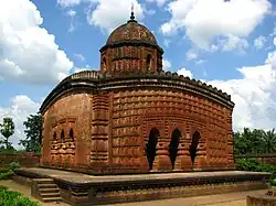 Madan Mohan Temple[2] or Madanamōhana mandir is a Krishna temple in Bishnupur town of Medinipur division. In the past, the Hindu deity Krishna was worshiped in the form of Madanamohan in this temple, but currently no worship is conducted. According to the foundation plaque found in the temple,[3] the temple was founded in 1694 AD (1000 Mallabda) by King Durjan Singha Dev of Mallabhum.[1] The temple is a unique example of ekaratna temple architecture, which belongs to the Ratna style developed in medieval Bengal.