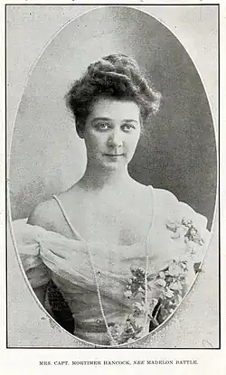 In 1904 she married Captain Mortimer Pawson Hancock, a British army officer, at All Souls Church in Biltmore Village.[5] The Atlanta Constitution described the ceremony as "the most distinguished wedding celebrated in North Carolina for a number of years".[5] After her marriage she moved to England and India with her husband. They had one son, Westray Battle Hancock, born 1907.