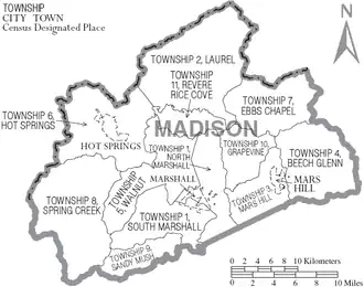 Madison County is a county located in the U.S. state of North Carolina. As of the 2020 census, the population was 21,193.[1] Its county seat is Marshall.[2] Madison County is part of the Asheville, NC Metropolitan Statistical Area.