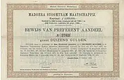 The Madoera Stoomtram Maatschappij (MdrSM, Dutch for Madurian Steam Tram Company) on Madura Island today's Indonesian province of Jawa Timur (East Java) was one of the railway companies in the Dutch East Indies. The company had its headquarters in The Hague and was licensed in 1896. In 1901 it put the first steam trams in operation to connect the western with the eastern end of the island.