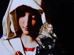 In 2018, Cady Lang from Time magazine, commented that there are few figures more closely associated with religion in pop culture than Madonna.[8] According to Ferraro, in Felling Italian: The Art of Ethnicity in America (2005), "Italian Catholicism informs just about everything Madonna does, most often in ways that are not officially sanctioned".[5] Such long-standing relationship or reciprocal reactions from Roman Catholic Church was noted by publications, including Phoenix New Times, whose editor Jason Keil described as a "synonymous with each other" in 2015.[9][10] In 2010, Time magazine included Madonna's moments in their "Top 10 Vatican Pop-Culture Moments"; a rank that shows how the Roman Catholic Church mixed with contemporary culture.[11]
