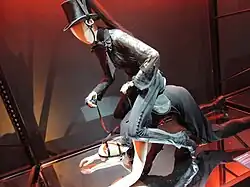 The way she deployed her sexuality while aging continued to draw commentaries. Hopkins commented that she was "ageing before the world [...] but she keeps presenting herself as a kind of 'sexual revolutionary'".[59] In 2008, Blender's editor-in-chief, Joe Levy commented about her entrance into the middle age, that "she is trying to go somewhere no one has gone before" with the possible exception of Cher.[60] In 2018, music scholar Freya Jarman at the University of Liverpool felt Madonna was "demonstrating a new kind of relevance".[61] In 2024, Eric Cabahug from The Post, says that her sexuality deployment shifted to against of "the ageist machine".[62]