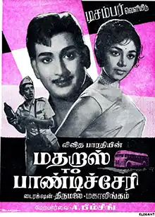 Madras to Pondicherry is a 1966 Indian Tamil-language road comedy thriller film, directed by Thirumalai–Mahalingam and written by Usilai Somanathan. The film stars Ravichandran and Kalpana. It was released on 16 December 1966, became a commercial success, and was remade in Hindi as Bombay to Goa (1972).[2]