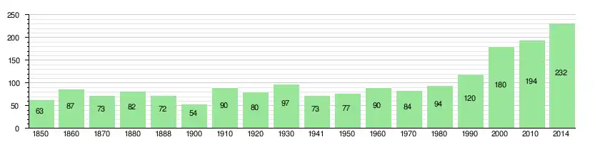 As of 2014, children and teenagers (0–19 years old) make up 17.7% of the population, while adults (20–64 years old) are 65.5% of the population and seniors (over 64 years old) make up 16.8%.[7] In 2015 there were 86 single residents, 116 people who were married or in a civil partnership, 8 widows or widowers and 19 divorced residents.[12]