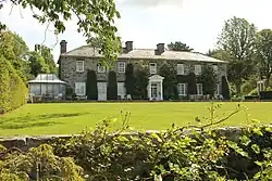 The original timber frame design of the house included six bays which had a central entrance and wooden ionic portico which dated to the late 15th century.[1][2] The house was the seat of the Kyffin family. In 1582 Maurice Kyffin, the High Sheriff of Caernarvonshire, altered and expanded the building; Kyffin encased the building's walls in rubble.[3] Henry McLaren, 2nd Baron Aberconway brought Maenan Hall in late 1945 and started repairs to the building which had not been maintained for several decades. Aberconway brought the estate for his wife, Christabel, as a dower house. He died in 1953 and farmer Lewis Lloyd Williams along his family moved into the nearby Byrn Rhudd house.[1]