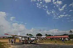 Mafia Airport (Uwanja wa Ndege wa Mafia, in Swahili) (IATA: MFA, ICAO: HTMA) is an airport on Mafia Island in the Mafia District of Pwani Region in Tanzania. The island is located in the Sea of Zanj in the Indian Ocean, 17 kilometres (11 mi) across the Mafia Channel on the Tanzanian mainland coast. In 2013 the landing strip at Mafia Airport was rehabilitated using grant funds provided by the United States government through the Millennium Challenge Corporation. The Mafia non-directional beacon (Ident: MF) is located on the field.[4][5]