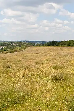 Magdalen Hill Down is a chalk downland hill, situated 1.5 miles (2.4 km) to the east of the centre of the city of Winchester in the English county of Hampshire. It is crossed by the B3404 road, the old main road from Winchester to London via New Alresford and Guildford. Most of the land to the south of the road is now a reserve run by the Butterfly Conservation, but part of it is used by the Magdalen Hill Cemetery, Winchester's principal cemetery. The land to the north of the road is largely farmed, but is also home to St Swithun's School and Leigh House Hospital.[1][2]