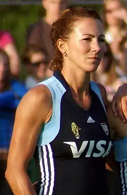 Aicega, who played as a central defender, is regarded as one of the most notable players in the history of Las Leonas,[1][2][3] for whom she played for more than 15 years.[4]