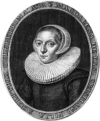 ![]() Portrait of Magdalena van de Passe by her brother Simon van de Passe, 1630 | |