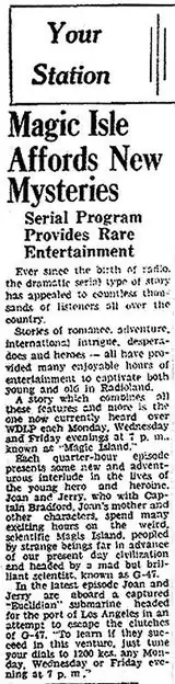 Magic Island was a science-fantasy radio serial syndicated in the late 1930s and 1940s. The series had 130 15-minute episodes, and all episodes have survived.