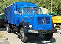 Magirus Mercur with a NATO shelter. This configuration and color was typically used by the "Technische Hilfswerk", part of the German disaster response system -