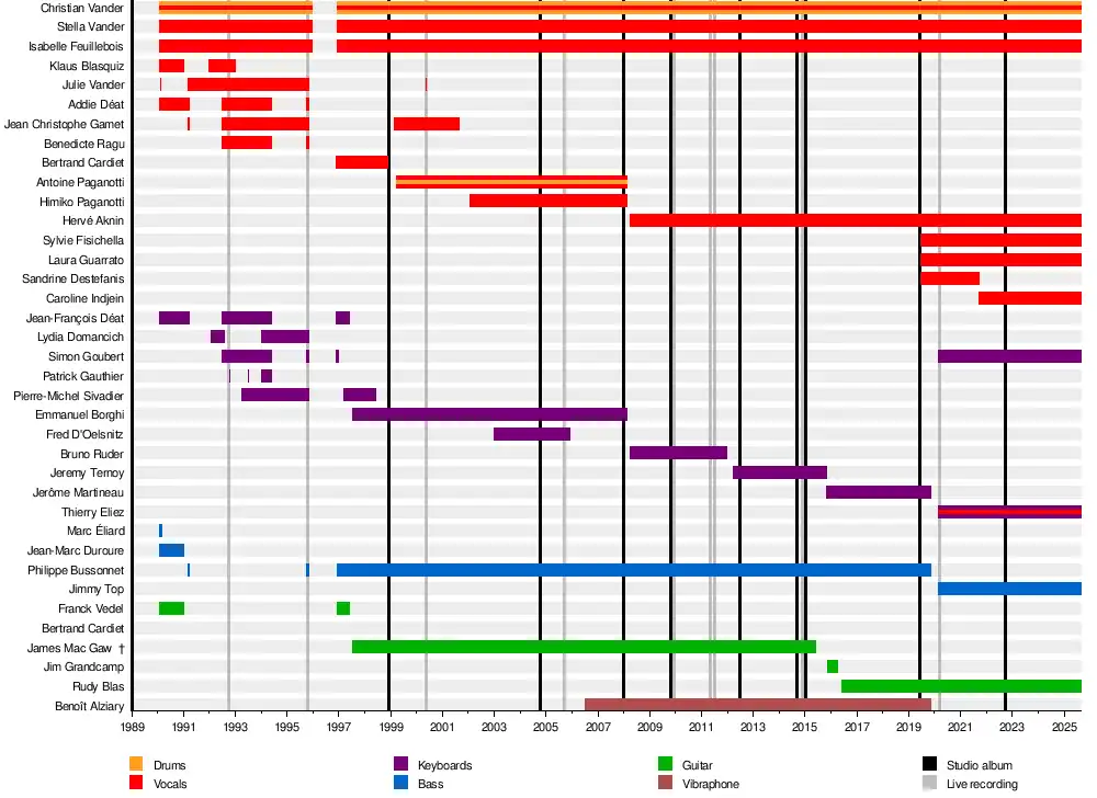 | Members | Christian Vander Stella Vander Isabelle Feuillebois Rudy Blas Hervé Aknin Francis Linon[1] Simon Goubert Thierry Eliez Jimmy Top Caroline Indjein Sylvie Fisichella Laura Guarrato |