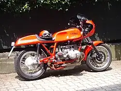 The MB1 was again a naked bike and used the BMW suspension and wheels, whereas the MB2 had a fairing, Forcella Italia (formerly Ceriani) and EPM wheels.[7] Production was terminated when BMW launched the four-cylinder K100 and discontinued the boxer engine. 150 units were produced, but sales were slow, the last one only being sold ten years later. Arturo Magni said of the poor sales "They seem to believe that, whereas a European chassis manufacturer could certainly improve on what Honda or another Japanese manufacturer could produce, the same could never true of their beloved BMWs."[6]