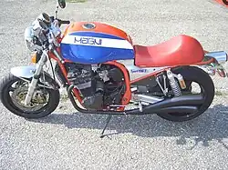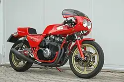 Following the demise of MV Agusta in 1978, Magni turned to Honda for a supply of engines. An agreement to use the 4-cylinder CB900 Bol d'Or engine was made. Two variants were made; the naked MH1 which used Honda forks and wheels and the faired MH2, which used Italian forks, wheels and brakes.[2][30] The exact specification of the machines varied according to the purchaser's requirements. Some had Eckert engine tuning components fitted and produced 120 bhp (90 kW).[31] Around 300 Honda engined machines were made, many being sold in Germany.[4]