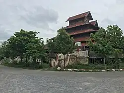 Maha Min Htin Monastery (Burmese: မဟာမင်းထင်ကျောင်း) is a historic Buddhist monastery in Mandalay, Burma. The monastery was established in 1852, donated by Maha Minhla Minkyaw U Min Htin and is located near the Mahamuni Buddha Temple.[1] It was originally built in Inwa and was moved to Mandalay in 1876.[1] Of the 426 teak columns used in the original monastery at Inwa, 143 remain. The monastery is surrounded by 3 small moats.[1]