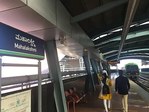 Mahalakshmi is an elevated metro station on the North-South corridor of the Green Line of Namma Metro serving Mahalakshmi Layout, ISKCON temple and surrounding areas in Bengaluru, India. It was opened to the public on 1 March 2014.[1][2]