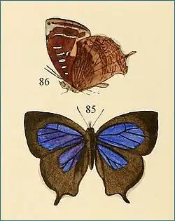 - ^ Hewitson, 1862 Specimen of a Catalogue of Lycaenidae in the British Museum Spec. Cat. Lep. Lyc. B. M. : [4],[1],2-15, pl. I-VIII,[1-8] (links to Ill. diurn. Lep. Lyc.)