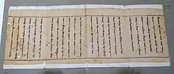 The Mahayana sutras are Buddhist texts that are accepted as canonical and authentic buddhavacana in Mahayana Buddhist sanghas. These include three types of sutras: Those spoken by the Buddha; those spoken through the Buddha's blessings; and those spoken through mandate.[1] They are largely preserved in Sanskrit manuscripts, and in translations such as the Tibetan Buddhist canon, and Chinese Buddhist canon. Several hundred Mahāyāna sutras survive in Sanskrit, Tibetan and Chinese translations.[2] The Buddhist scholar Asanga classified the Mahāyāna sūtras as part of the Bodhisattva Tripiṭaka, a collection of texts meant for bodhisattvas.[3]